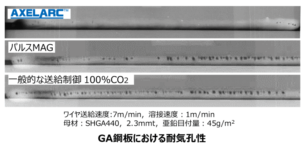 他の溶接法に比べ、AXELARC™は気孔欠陥の発生数が非常に少ない。